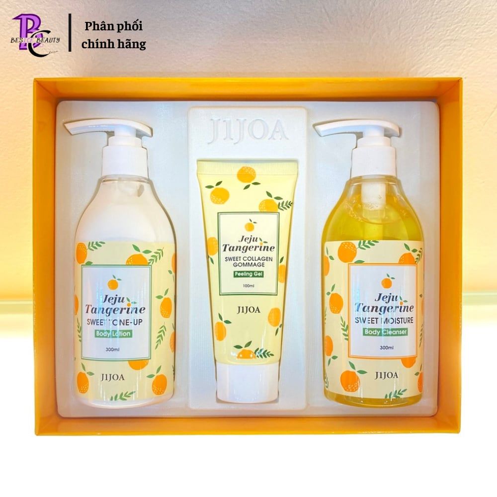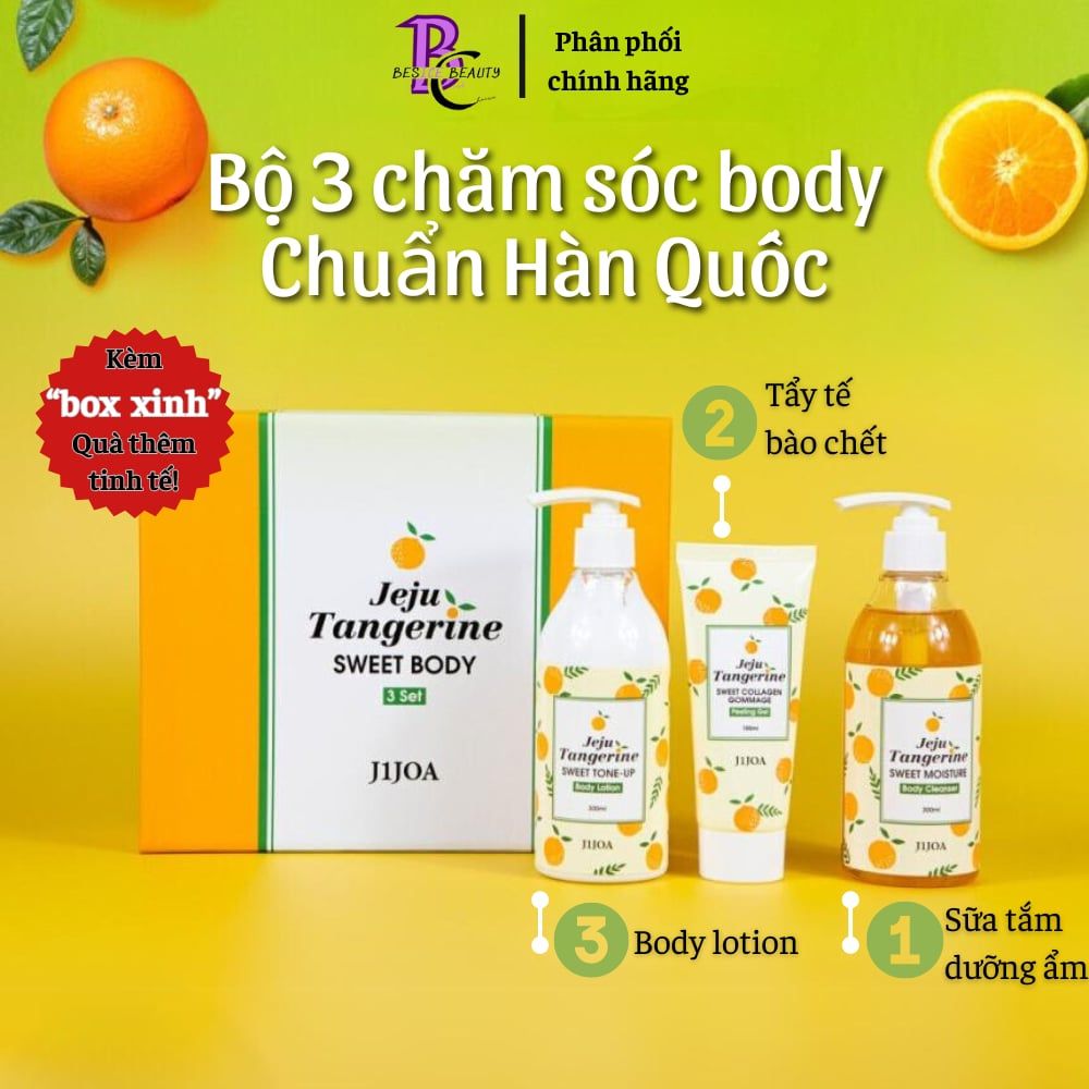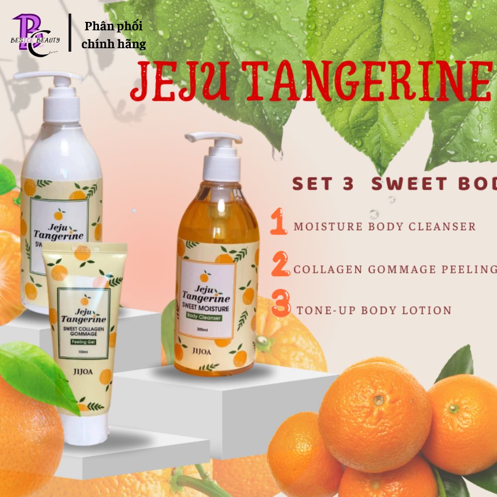Bộ 3 sản phẩm chăm sóc BODY Hàn Quốc Jeju Tangerine Sweet Body, chiết xuất quýt làm sạch, tẩy tế bào chết, dưỡng ẩm