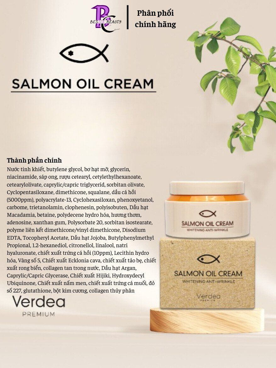 Kem cá hồi Hàn Quốc VERDEA SALMON OIL CREAM xóa nhăn, dưỡng trắng, dưỡng ẩm, chiết xuất cá hồi, 100g