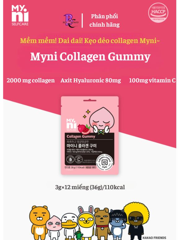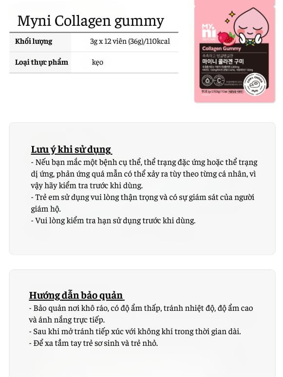Kẹo dẻo Collagen lựu đỏ Hàn Quốc Myni Collagen Gummy 36g (3gx12 viên), da săn chắc ngăn ngừa lão hóa