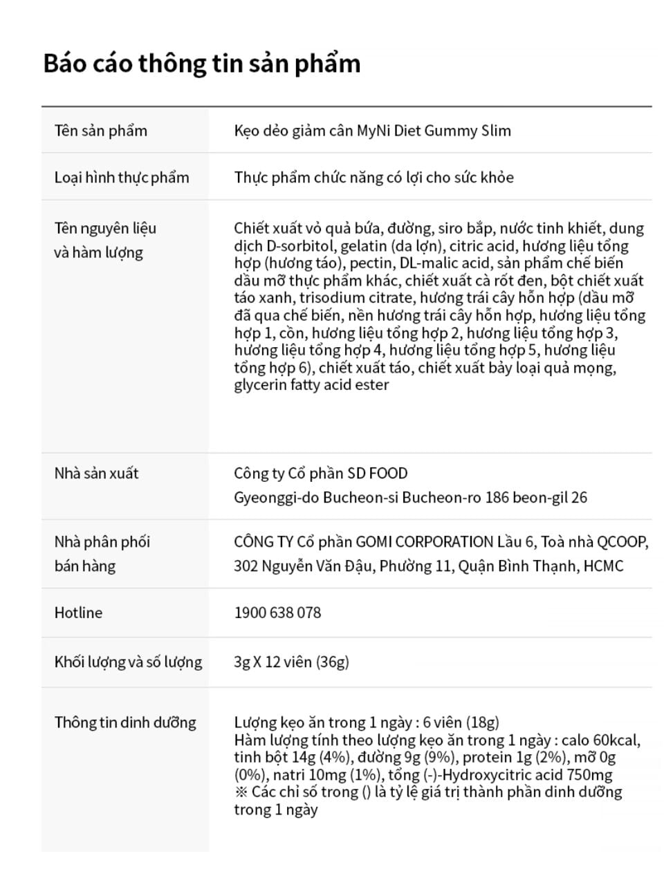 Kẹo dẻo hỗ trợ giảm cân Myni Diet Gummy gói 36g (3g x 12 viên)